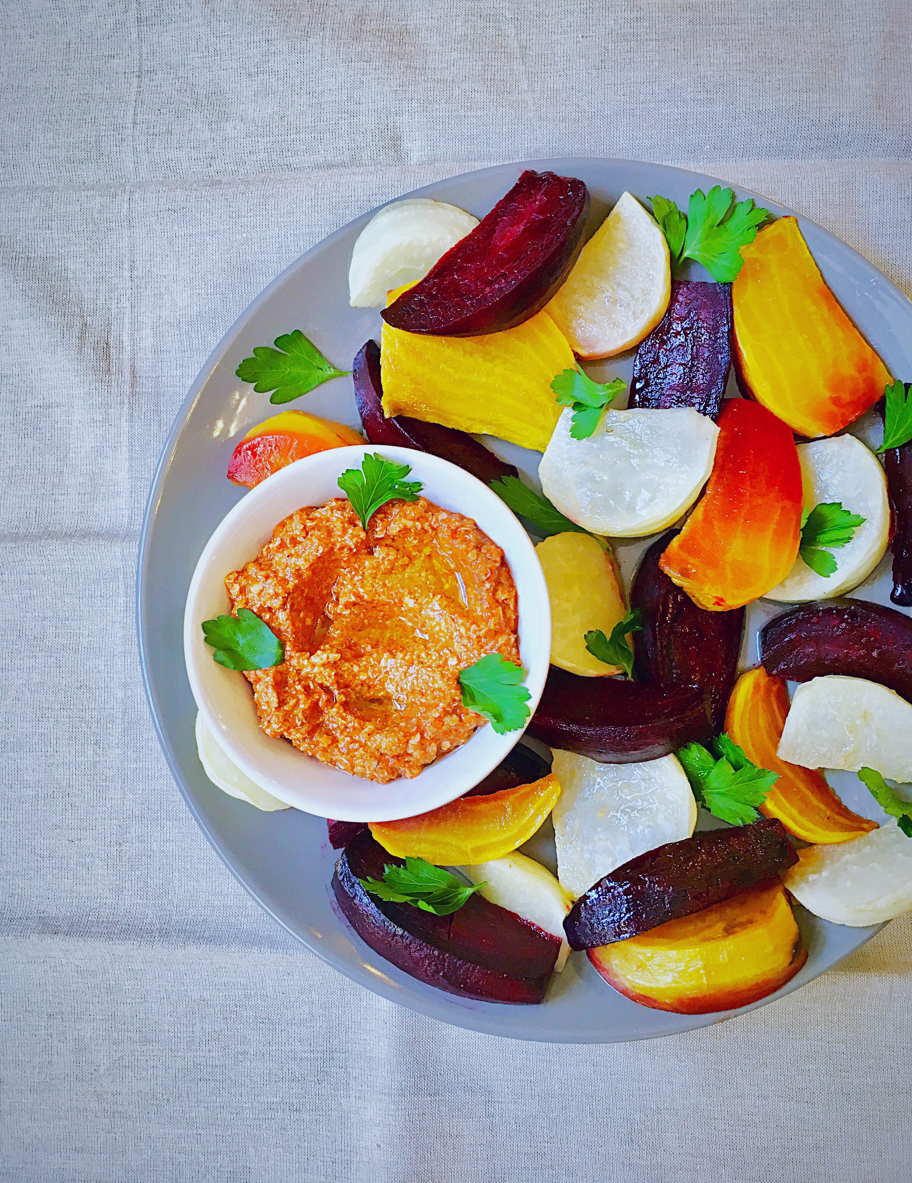 Gluten-free Muhamara Sauce Served With Roasted Beets and Kohlrabi