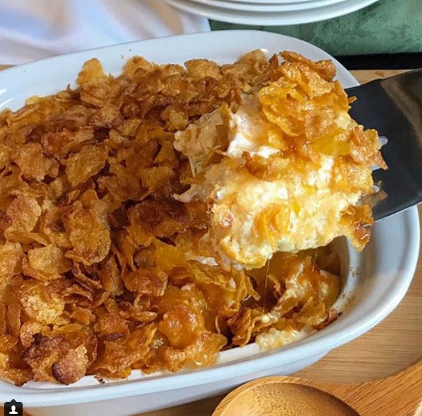 Cheesy Potatoes with Buttery Cornflake Topping
