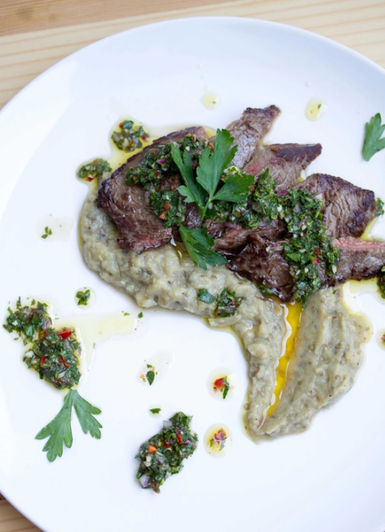 Home/Recipes/Meat/Chimichurri Minute Steak with Eggplant Puree