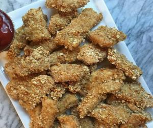 Home/Recipes/Chicken/Baked Honey Mustard Pretzel Chicken Nuggets