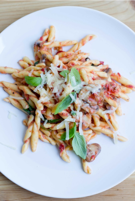 Trecce Pasta in Creamy Tomato Sauce with Mushrooms