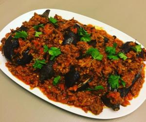 Stuffed Aubergines ( Eggplant) with Garlic Beef, Minced