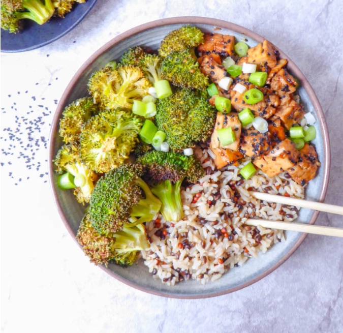 Healthy Vegan and Gluten Free Crispy Tofu Bowl with Medley Rice