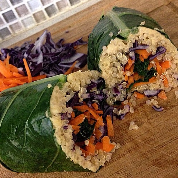 Home/Recipes/Salads/Collard Green Wraps With Toasted Sesame & Soy Quinoa Filling