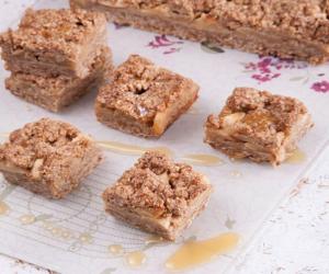 Apple Pie Granola Bars with Salted Caramel Sauce!