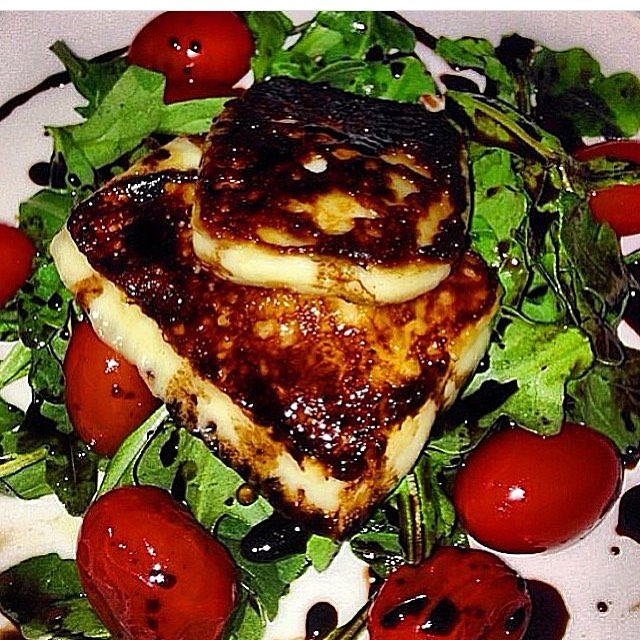 Seared Halloumi Salad With Baby Spinach & Balsamic Reduction