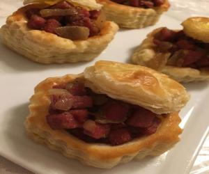 Open Face Beef Dumplings with Sweet and Sour Sauce